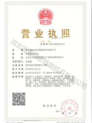 | 资质单位: 河北通海瑞宏铁路机具有限公司 |